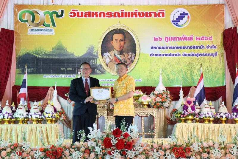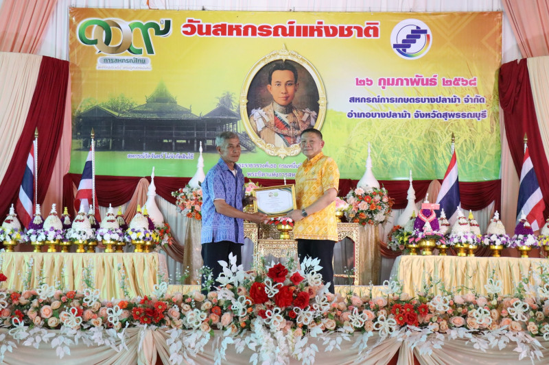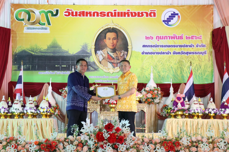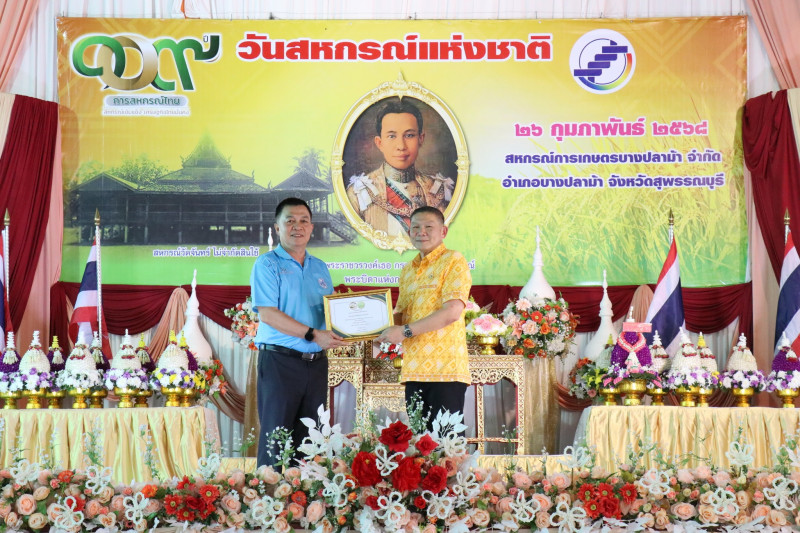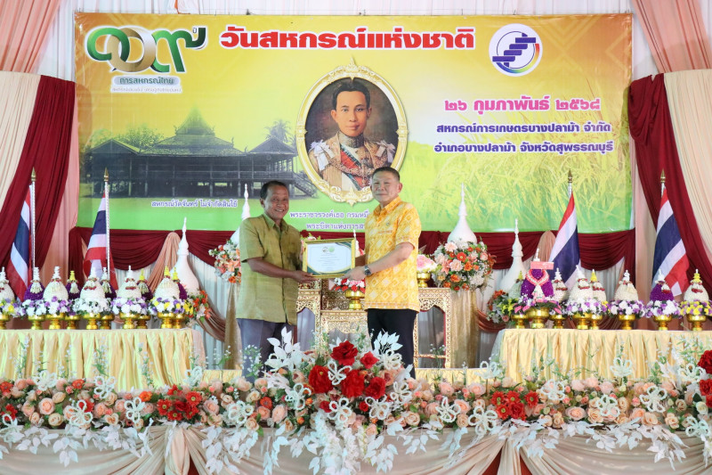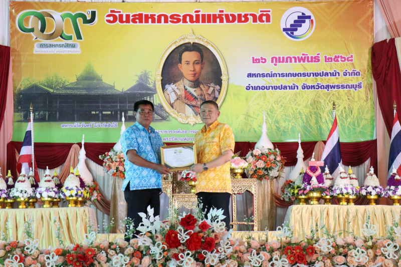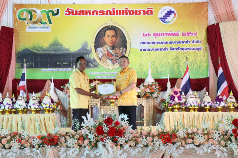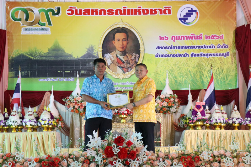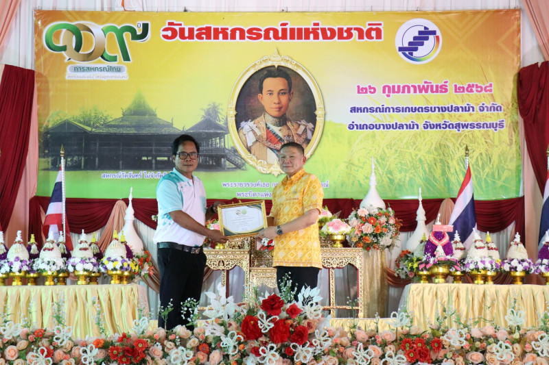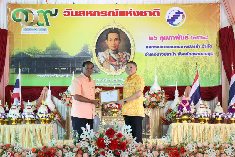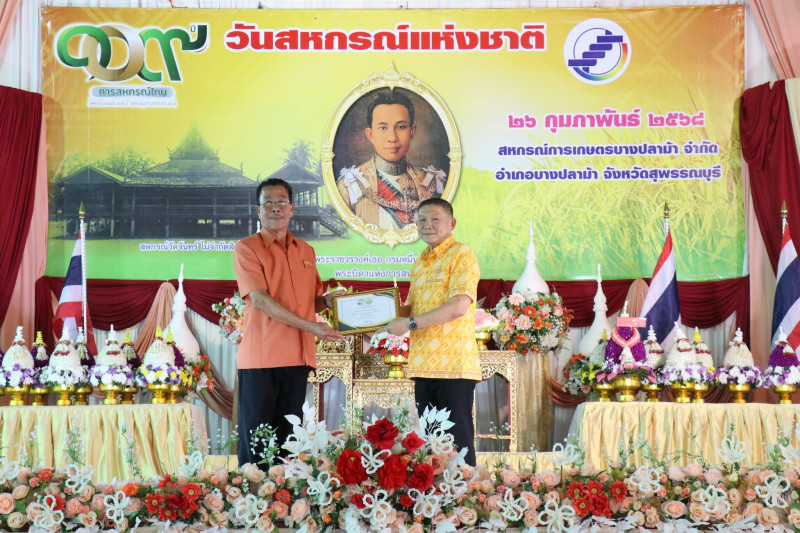 วันที่ 26 กุมภาพันธ์ 2568 เวลา 17.00 น. นายพิริยะ ฉันทดิลก ผู้ว่าราชการจังหวัดสุพรรณบุรี ให้เกียรติเป็นประธานในพิธีวางพานพุ่มดอกไม้สักการะพระราชวรวงศ์เธอ กรมหมื่นพิทยาลงกรณ์ “พระบิดาแห่งการสหกรณ์ไทย” พร้อมทั้งอ่านสารนางสาวแพทองธาร ชินวัตร นายกรัฐมนตรี เนื่องในวันสหกรณ์แห่งชาติ ประจำปี พ.ศ. 2568 และมอบใบประกาศนียบัตรให้แก่สหกรณ์ดีเด่นระดับจังหวัด จำนวน 1 แห่ง และสหกรณ์ที่มีความเข้มแข็งระดับชั้น 1 จำนวน 15 แห่ง โดยมีนายมนตรี เทพโพธา สหกรณ์จังหวัดสุพรรณบุรี กล่าวรายงานและวัตถุประสงค์ในการจัดงาน มีพันจ่าเอก สุริยา ภู่สวัสดิ์ นายอำเภอบางปลาม้า หัวหน้าส่วนราชการในสังกัดกระทรวงเกษตรและสหกรณ์ ประธานกรรมการสหกรณ์ คณะกรรมการสหกรณ์ ผู้จัดการสหกรณ์ เจ้าหน้าที่สหกรณ์ และสมาชิกสหกรณ์ในจังหวัดสุพรรณบุรี ร่วมพิธีวางพานพุ่มดอกไม้สดสักการะพระราชวรวงศ์เธอ กรมหมื่นพิทยาลงกรณ์ “พระบิดาแห่งการสหกรณ์ไทย” เพื่อเป็นการเป็นการน้อมรำลึกถึงพระกรุณาคุณของพระราชวรวงศ์เธอ กรมหมื่นพิทยาลงกรณ์ “พระบิดาแห่งการสหกรณ์ไทย” ณ สหกรณ์การเกษตรบางปลาม้า จำกัด อำเภอบางปลาม้า จังหวัดสุพรรณบุรี