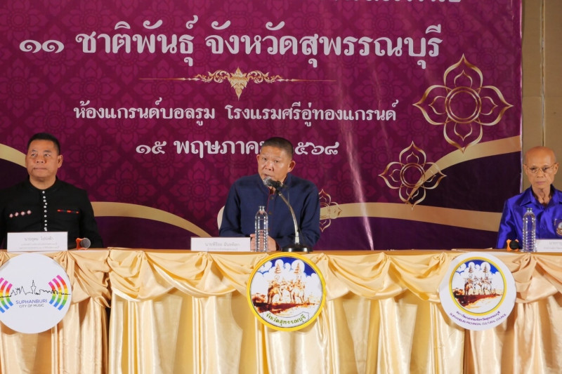 วันที่ 15 พฤษภาคม 2568 เวลา 16.00 น. นายมนตรี เทพโพธา สหกรณ์จังหวัดสุพรรณบุรี พร้อมด้วยบุคลากรกลุ่มส่งเสริมและพัฒนาธุรกิจสหกรณ์ เข้าร่วมงานแถลงข่าวการจัดงานมหกรรมสานสัมพันธ์ 11 ชาติพันธ์ จังหวัดสุพรรณบุรี ภายใต้โครงการจัดกิจกรรมส่งเสริมการท่องเที่ยวจังหวัดสุพรรณบุรี โดยมีนายพิริยะ ฉันทดิลก ผู้ว่าราชการจังหวัดสุพรรณบุรี เป็นประธานในการแถลงข่าว ณ ห้องแกรนด์บอลรูม โรงแรมศรีอู่ทอง แกรนด์ อำเภอเมืองสุพรรณบุรี จังหวัดสุพรรณบุรี