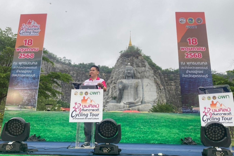 วันที่ 18 พฤษภาคม 2568 นายมนตรี เทพโพธา สหกรณ์จังหวัดสุพรรณบุรี พร้อมด้วยบุคลากรกลุ่มส่งเสริมสหกรณ์ 2 เข้าร่วมพิธีเปิดกิจกรรม “ปั่นชมศิลป์ ถิ่นทวารวดี” Cycling Tour of Dvaravati Art and Culture สนามที่ 3 จังหวัดสุพรรณบุรี “ปั่นย้อนรอยเมืองโบราณอู่ทอง” โดยมีนายวราวุธ ศิลปอาชา รัฐมนตรีว่าการกระทรวงการพัฒนาสังคมและความมั่นคงของมนุษย์ เป็นประธานในพิธี ณ พุทธมณฑลประจำจังหวัดสุพรรณบุรี ตำบลอู่ทอง อำเภออู่ทอง จังหวัดสุพรรณบุรี