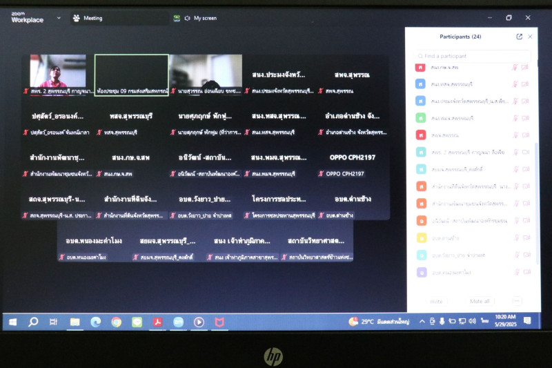 วันที่ 29 พฤษภาคม 2568 สำนักงานสหกรณ์จังหวัดสุพรรณบุรี จัดประชุมคณะทำงานส่งเสริมพัฒนาอาชีพและการตลาด ครั้งที่ 2/2568 โดยประชุมผ่านระบบออนไลน์ Zoom Meeting จากห้องประชุม สหกรณ์ สำนักงานสหกรณ์จังหวัดสุพรรณบุรี ไปยังหน่วยงานที่เกี่ยวข้อง โดยมีนายวิเชียร ลี้ธนะรุ่ง ผู้อำนวยการกลุ่มจัดตั้งและส่งเสริมสหกรณ์ ในฐานะผู้ช่วยเลขานุการคณะทำงาน เป็นประธานในการประชุม ซึ่งมีคณะทำงานส่งเสริมพัฒนาอาชีพและการตลาด จำนวน 39 หน่วยงาน และผู้ที่เกี่ยวข้องเข้าร่วมประชุม เพื่อติดตามผลการปฏิบัติงานและงบประมาณการส่งเสริมพัฒนาอาชีพและการตลาด ประจำปีงบประมาณ พ.ศ. 2568 ตามกรอบภารกิจ 6 ด้าน คือ ด้านการพัฒนาที่ดิน ด้านการพัฒนาแหล่งน้ำและการพัฒนาปัจจัยพื้นฐาน ด้านการส่งเสริมและพัฒนาอาชีพ การตลาด ด้านการส่งเสริมการรวมกลุ่ม ด้านการสนับสนุนการเข้าถึงแหล่งเงินทุนเพื่อการประกอบอาชีพ และด้านการส่งเสริมและจัดทำบัญชีครัวเรือน