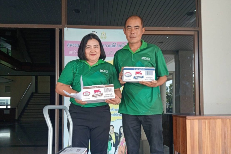 วันที่ 17 กันยายน 2568 นายมนตรี เทพโพธา สหกรณ์จังหวัดสุพรรณบุรี พร้อมด้วยนางอ้อมใจ แตรสังข์ ผู้อำนวยการกลุ่มส่งเสริมและพัฒนาธุรกิจสหกรณ์ และบุคลากรสำนักงานสหกรณ์จังหวัดสุพรรณบุรี รับมอบผลิตภัณฑ์นมไทย - เดนมาร์ก จากองค์การส่งเสริมกิจการโคนมแห่งประเทศไทย (อ.ส.ค.) รอบที่ 1 จำนวน 75 ลัง รวมเป็นเงิน 21,489 บาท และจัดส่งผลิตภัณฑ์นมไทย - เดนมาร์ก ไปยังผู้บริโภคซึ่งได้แก่ เครือข่ายสหกรณ์ หน่วยงานราชการในพื้นที่ และบุคลากรสำนักงานสหกรณ์จังหวัดสุพรรณบุรี เพื่อเป็นการช่วยเหลือและบรรเทาความเดือดร้อนให้กับสหกรณ์โคนมและเกษตรกรผู้เลี้ยงโคนมเป็นการเร่งด่วน