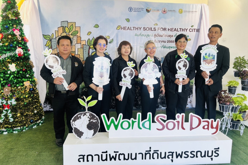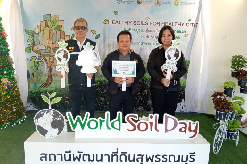 วันที่ 26 ธันวาคม 2568 นายมนตรี เทพโพธา สหกรณ์จังหวัดสุพรรณบุรี พร้อมด้วยนางอ้อมใจ แตรสังข์ ผู้อำนวยการกลุ่มส่งเสริมและพัฒนาธุรกิจสหกรณ์ ร่วมพิธีเปิดงาน “วันดินโลก ปี 2568” ในหัวข้อ “Healthy soils healthy cities ดินที่สมบูรณ์ สู่เมืองที่สมดุล เกื้อกูลชีวิต” โดยมีนายณัฐพงษ์ สงวนจิตร ผู้ว่าราชการจังหวัดสุพรรณบุรี เป็นประธานในพิธีเปิด ณ อาคารฝึกอบรม สถานีพัฒนาที่ดินสุพรรณบุรี ศูนย์ราชการจังหวัดสุพรรณบุรี แห่งที่ 2 (บ้านโพธิ์เขียว) อำเภอเมืองสุพรรณบุรี จังหวัดสุพรรณบุรี เพื่อเป็นเกียรติฯ และร่วมน้อมรำลึกในพระมหากรุณาธิคุณ แห่งพระบาทสมเด็จพระบรมชนกาธิเบศร มหาภูมิพลอดุลยเดชมหาราชบรมนาถบพิตร