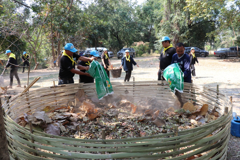 วันที่ 16 มกราคม 2569 สำนักงานสหกรณ์จังหวัดสุพรรณบุรี ร่วมขับเคลื่อนกิจกรรมโครงการ “สุพรรณบุรี 1,000 เสวียน ลดขยะ ลดการเผา ลดฝุ่น ลดโลกร้อน” โดยมีนายมนตรี เทพโพธา สหกรณ์จังหวัดสุพรรณบุรี พร้อมด้วยบุคลากรสำนักงานสหกรณ์จังหวัดสุพรรณบุรี เข้าร่วมกิจกรรม ณ นิคมสหกรณ์ห้วยขมิ้น อำเภอด่านช้าง จังหวัดสุพรรณบุรี เพื่อเป็นการลดปัญหาการนำใบไม้ไปกำจัดโดยการเผา ซึ่งจะส่งผลให้เกิดหมอกควัน และฝุ่นละอองขนาดเล็ก PM2.5 ส่งผลกระทบต่อสุขภาพของประชาชน และเพื่อเป็นไปตามข้อสั่งการของรองนายกรัฐมนตรี (นายโสภณ ซารัมย์) ในการดำเนินการป้องกันและแก้ปัญหาไฟป่า หมอกควัน และฝุ่นละอองขนาดเล็ก PM2.5 รวมทั้งเพื่อให้ใบไม้เกิดการย่อยสลายกลายเป็นปุ๋ยอินทรีย์ให้กับต้นไม้