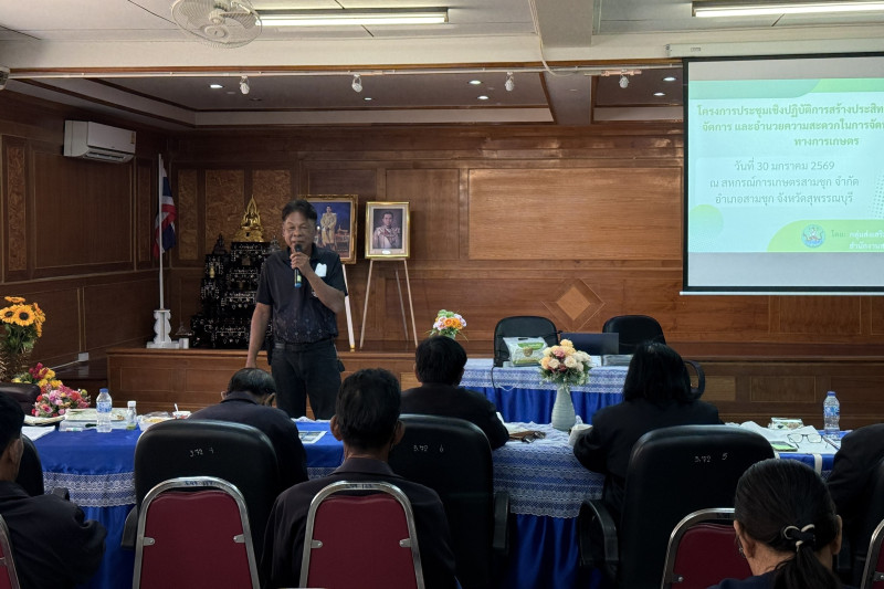วันที่ 30 มกราคม 2569 นางอ้อมใจ แตรสังข์ ผู้อำนวยการกลุ่มส่งเสริมและพัฒนาธุรกิจสหกรณ์ พร้อมด้วยเจ้าหน้าที่กลุ่มส่งเสริมและพัฒนาธุรกิจสหกรณ์ ดำเนินการจัดประชุมเชิงปฏิบัติการสร้างประสิทธิภาพการบริหารจัดการ และอำนวยความสะดวกในการจัดหาเครื่องจักรกลทางการเกษตร โดยมีคณะกรรมการ เจ้าหน้าที่ และสมาชิกของสหกรณ์การเกษตรสามชุก จำกัด จำนวน 30 คน เข้าร่วมประชุม โอกาสนี้นายมนตรี เทพโพธา สหกรณ์จังหวัดสุพรรณบุรี ได้เข้าเยี่ยมและพบปะพูดคุยกับผู้เข้าร่วมประชุม ณ ห้องประชุมสหกรณ์การเกษตรสามชุก จำกัด อำเภอสามชุก จังหวัดสุพรรณบุรี สำหรับการประชุมในครั้งนี้ มีวัตถุประสงค์เพื่อเสริมสร้างความเข้มแข็งให้กับสหกรณ์และกลุ่มเกษตรกรให้สามารถตอบสนองความต้องการในการทำการเกษตรของสมาชิกสหกรณ์เพิ่มประสิทธิภาพการบริหารจัดการให้กับสหกรณ์และกลุ่มเกษตรกรในการจัดการและอำนวยความสะดวกในการจัดหาเครื่องจักรกลทางการเกษตรให้บริการระหว่างสมาชิกและผู้ประกอบการภาคเอกชน ยกระดับสหกรณ์และกลุ่มเกษตรกร ให้เป็นผู้ให้บริการทางการเกษตรแบบครบวงจรให้กับสมาชิกและชุมชน ซึ่งได้รับเกียรติจากนางสาวกำไร เขียวฉาย ผู้จัดการสหกรณ์การเกษตรทุ่งวัดสิงห์ จำกัด และนายนิมิตร สว่างศรี ประธานศูนย์เรียนรู้การเพิ่มประสิทธิภาพการผลิตสินค้าเกษตร มาเป็นวิทยากรในบรรยาย