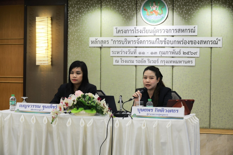 วันที่ 12 กุมภาพันธ์ 2569 นางสาวพัชรินทร์ นิยมทอง ผู้อำนวยการกลุ่มตรวจการสหกรณ์ เข้าร่วมโครงการโรงเรียนผู้ตรวจการสหกรณ์ หลักสูตร “การบริหารจัดการแก้ไขข้อบกพร่องของสหกรณ์” ระหว่างวันที่ 11-13 กุมภาพันธ์ 2569 โดยมีนายประวัติ แดงบรรจง รองอธิบดีกรมส่งเสริมสหกรณ์ เป็นประธานในพิธีเปิด ณ โรงแรมรอยัลริเวอร์ เขตบางพลัด กรุงเทพมหานคร สำหรับโครงการนี้ มีวัตถุประสงค์เพื่อพัฒนาองค์ความรู้ด้านกฎหมายแรงงานและกฎหมายสหกรณ์ เพื่อนำไปใช้บริหารจัดการแก้ไขข้อบกพร่องและแก้ไขเรื่องร้องเรียนของสหกรณ์ เสริมทักษะการจัดการเมื่อเกิดข้อบกพร่อง การออกคำสั่งทางปกครอง และกระบวนการอุทธรณ์คำสั่งทางปกครองเกี่ยวกับกฎหมายสหกรณ์ได้อย่างถูกต้อง