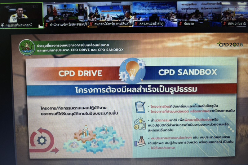 วันที่ 23 มีนาคม 2569 นายมนตรี เทพโพธา สหกรณ์จังหวัดสุพรรณบุรี พร้อมด้วยบุคลากรสำนักงานสหกรณ์จังหวัดสุพรรณบุรี เข้าร่วมประชุมชี้แจงกรอบแนวทางการขับเคลื่อนนโยบาย และเกณฑ์การประกวด CPD DRIVE และ CPD SANDBOX ประจำปีงบประมาณ พ.ศ. 2569 ผ่านระบบออนไลน์ Zoom Meeting โดยมีนายณฤทธิ์ บุญชัย รองอธิบดีกรมส่งเสริมสหกรณ์ เป็นประธานการประชุม ณ ห้องประชุม สหกรณ์ สำนักงานสหกรณ์จังหวัดสุพรรณบุรี สำหรับการประชุมในครั้งนี้ ที่ประชุมได้หารือกรอบแนวทางการขับเคลื่อนนโยบายอธิบดีกรมส่งเสริมสหกรณ์ (CPD DRIVE) และแนวทางการขับเคลื่อนนโยบายอธิบดีกรมส่งเสริมสหกรณ์ (CPD DRIVE และ CPD SANDBOX) ประจำปีงบประมาณ พ.ศ. 2569 ไปสู่การปฏิบัติ พร้อมทั้งพิจารณาหลักเกณฑ์การคัดเลือก การประกวด และการให้รางวัล CPD DRIVE และ CPD SANDBOX